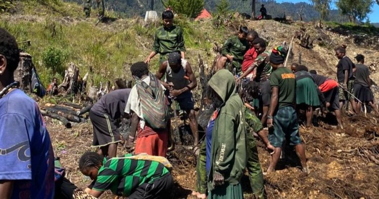 INTAN JAYA - Komitmen TNI dalam memperkuat kebersamaan dengan masyarakat kembali ditunjukkan Satgas Yonif 631/Antang melalui aksi gotong royong membantu warga menyiapkan lahan pembangunan honai di Sugapa, Kabupaten Intan Jaya, Papua Tengah, Rabu (22/4/2026).
