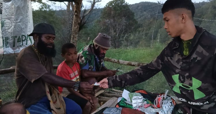 INTAN JAYA - Satgas Pamtas RI–PNG Mobile Yonif 113/Jaya Sakti kembali menunjukkan kepeduliannya terhadap masyarakat pedalaman Papua melalui kegiatan komunikasi sosial (Komsos) dan layanan kesehatan gratis di Pos Kendetapa, Kamis (23/4/2026).